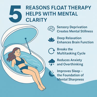 That’s where float therapy comes in — a unique, science-backed way to calm the mind, recharge your focus, and regain control of your thoughts. Here are 5 reasons float therapy is a powerful tool for mental clarity.